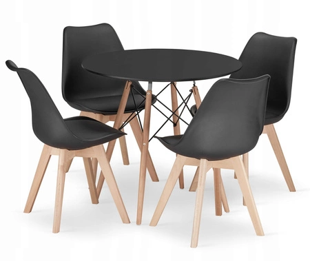 Zestaw stół okrągły TODI 80 czarny + 4 krzesła LAGO czarne