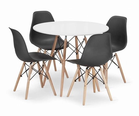 Zestaw stół okrągły TODI 90 biały + 4 krzesła OSAKA czarne